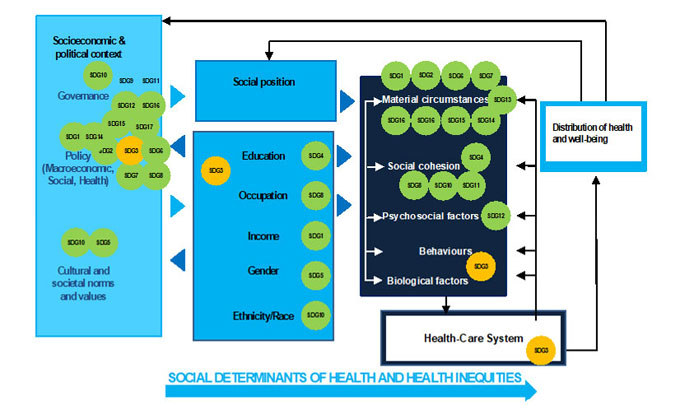 Figure 2.2.2 : Relation entre les ODD et la santé et ses déterminants selon le modèle CDSS 3